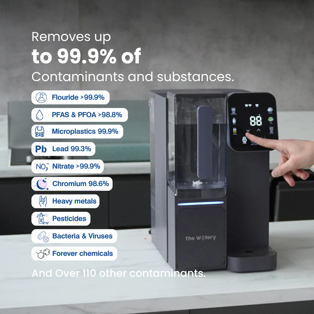 The Watery delivers fresh, clean, drinkable water through cutting-edge 4-stage reverse osmosis—all at the touch of a screen.